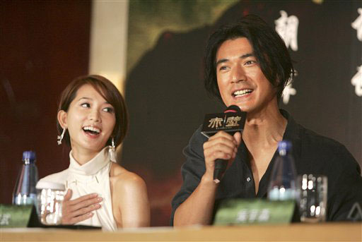 Taiwanese actress Lin Chi-ling and Japanese-Taiwanese actor Takeshi Kaneshiro discuss their roles in Red Cliff on June 8, 2008.
