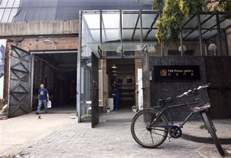 The 798 art district, located in the city's eastern Dashanzi neighborhood in Beijing, China, was a 50's-era factory zone transformed into a bohemian oasis with galleries, cafes, bookstores, outdoor sculptures, and lots of graffiti splashed on the old factory walls.