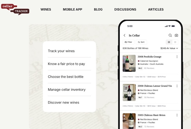 CellarTracker was an early adopter of AI to provide automated sommelier-level wine recommendations. (Excerpt from CellarTracker Homepage)