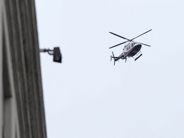 helicopter flies over the Metropolitan Detention Center in Brooklyn (MDC Brooklyn), where Captured Venezuelan President Nicolas Maduro is held after an initial court appearance to face U.S. federal charges including narco-terrorism, conspiracy, drug trafficking, money laundering and others in New York City, U.S., January 5, 2026. REUTERS/Angelina Katsanis