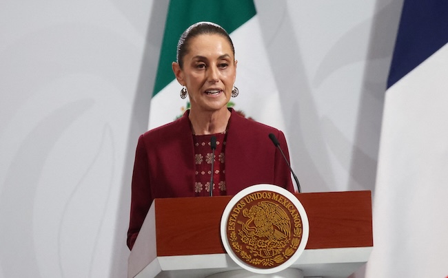exico's President Claudia Sheinbaum attends a press conference with France's President Emmanuel Macron (not pictured) at the National Palace in Mexico City, Mexico, November 7, 2025. REUTERS/Henry Romero