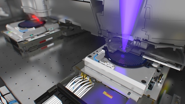 ASML's cutting-edge lithography equipment uses 13.5 nanometer wavelength extreme ultraviolet light to etch 3-nm semiconductor substrates. (ASML Photo)