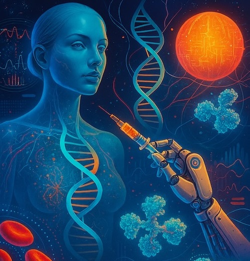 Artist's conception of the variety of biotech breakthroughs during 2025. (Image by Grok)