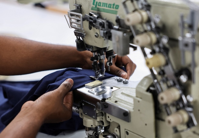 A worker uses a sewing machine at a garment factory in Tiruppur, in the Southern state of Tamil Nadu, India, April 22, 2025. REUTERS/Francis Mascarenhas