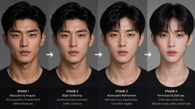 Across K-pop stages and K-drama closeups, a very particular face has become dominant: narrow chin, tapered jaw, smooth cheek contours, big eyes, soft lips. It’s a look that reads less “rugged male lead” and more “androgynous anime prince.” And while makeup, lighting, and styling play their part, a growing share of that transformation is surgical—especially via jawbone shaving, also known as V-line surgery.