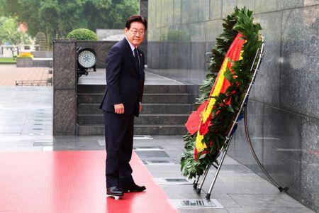 South Korean President Lee Jae Myung lays a wreath at the Ho Chi Minh Mausoleum during a state visit to Hanoi, Vietnam, April 22, 2026. REUTERS/Thinh Nguyen